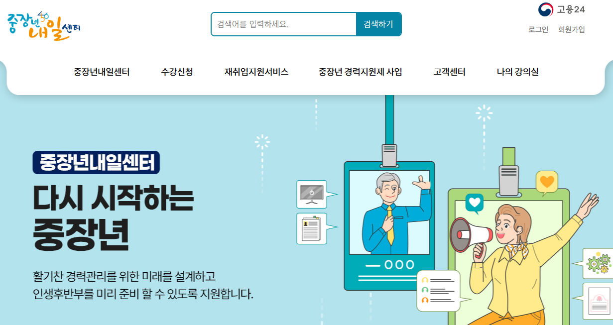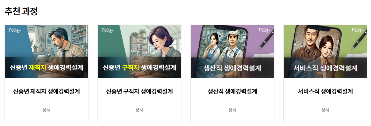 40대 이상부터 재취업을 위한 다양한 프로그램을 무상으로 지원 및 제공하고 있습니다.