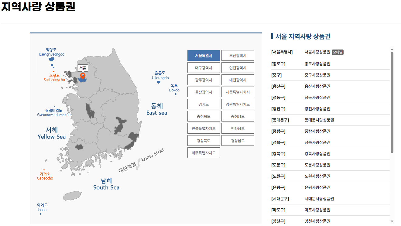 내고장소개 홈페이지에서 내 지역의 지역사랑 상품권 사용처를 조회할 수 있습니다.