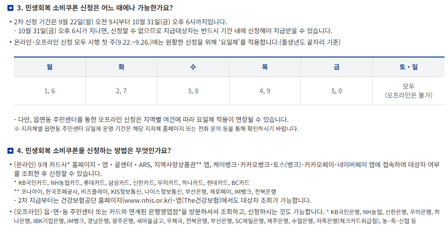 2차 신청 첫 주(9월 22일 ~ 9월 26일)는 출생연도 끝자리 기준 요일제가 적용됩니다.