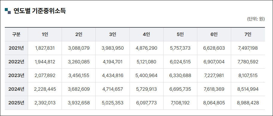 2025년 기준 중위소득 현황