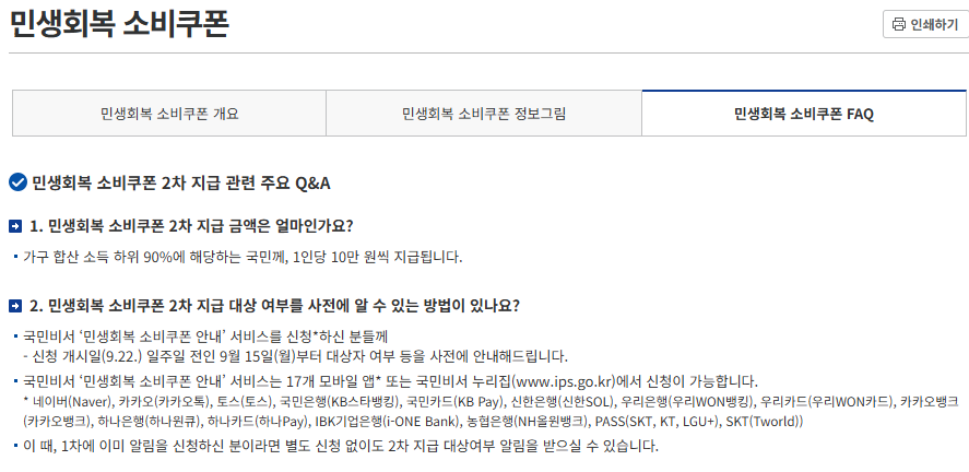 민생지원금 2차 신청일 신청기간 소비기간 신청일